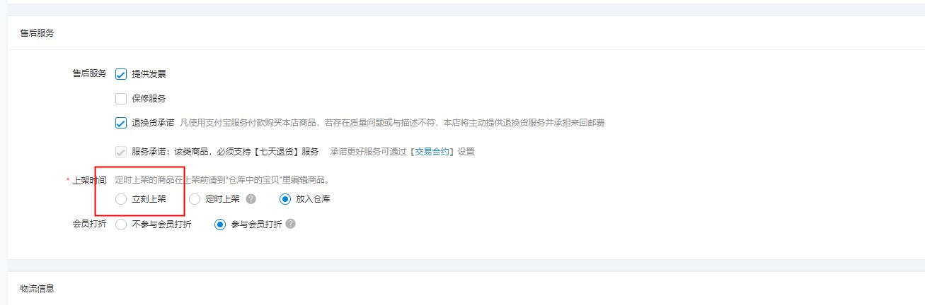 3、被下架的违规商品是默认“放入仓库中”,您编辑修改好,需要调整成“立刻上架”。