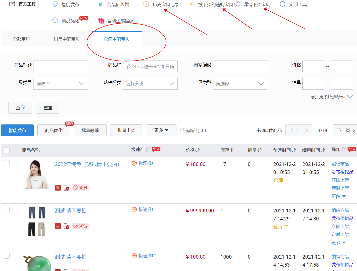2、淘宝规定90天无成交、无浏览、无编辑商品为滞销商品,作下架处理。下架宝贝可编辑后上架,滞销下架90天未编辑或上架商品,商品将移动至历史商品库(即:历史宝贝记录)因此仓库中的宝贝就会变少。