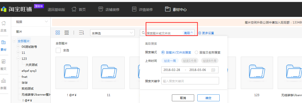 2.图片太多找不到或放在哪个文件夹下不清楚。请进入【卖家中心】-【图片空间】,在功能区可按照图片/文件夹或按照被引用宝贝搜索