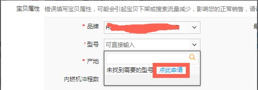 “摩托车整车”品牌申请入口请点击此处进入,产品型号(spu)申请入口请点击此处进入,或者点击下图中的“点此申请”进入。类目选择:摩托车/装备/配件>摩托车整车,产品信息审核时间为2个工作日内。
