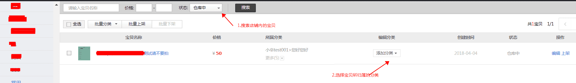 2.宝贝分类不展示商品,原因是宝贝分类下没有添加该商品,请通过【卖家中心】-【店铺装修】-【分类】中进行添加宝贝;若是自动分类的,请检查商品发布属性是否填写正确