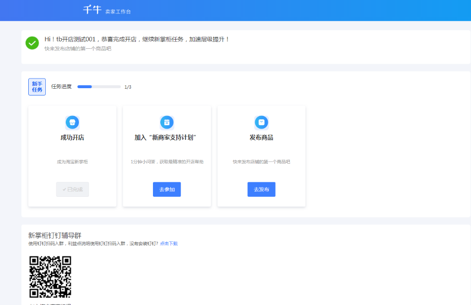 第四步 开店成功,可以完成问卷调研以及尝试发布商品