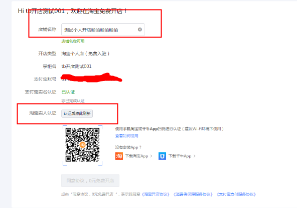 第三步: 淘宝实人认证通过之后 点击同意协议,0元免费开店