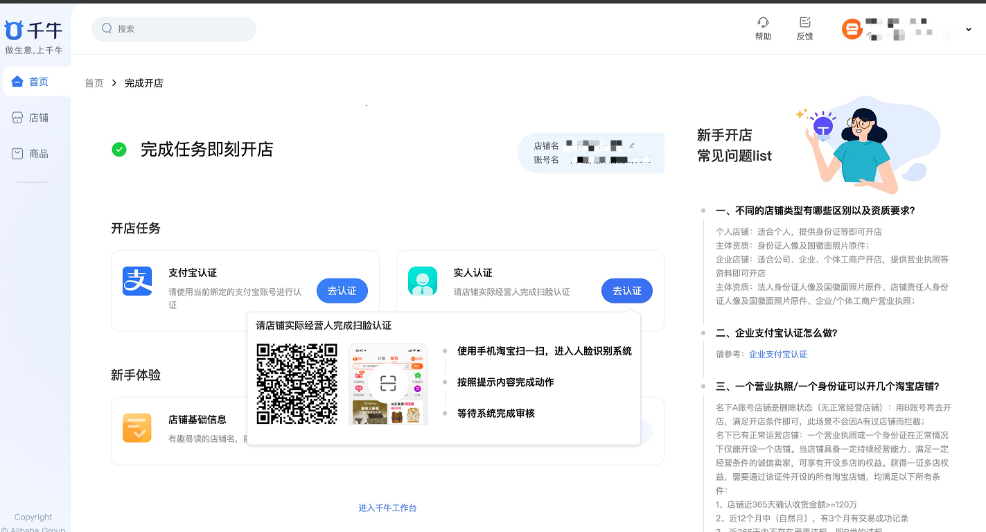 淘宝开店入口,请点击“免费开店”认证流程:当您在页面输入信息开店后,会跳转千牛工作台,您可在此页面按照提示完成支付宝认证和实人认证,鼠标悬停会提示认证流程。 点击展开全文 转载请注明出处安可林文章网 » 创建个人店铺如何进行淘宝认证