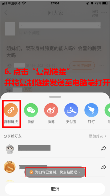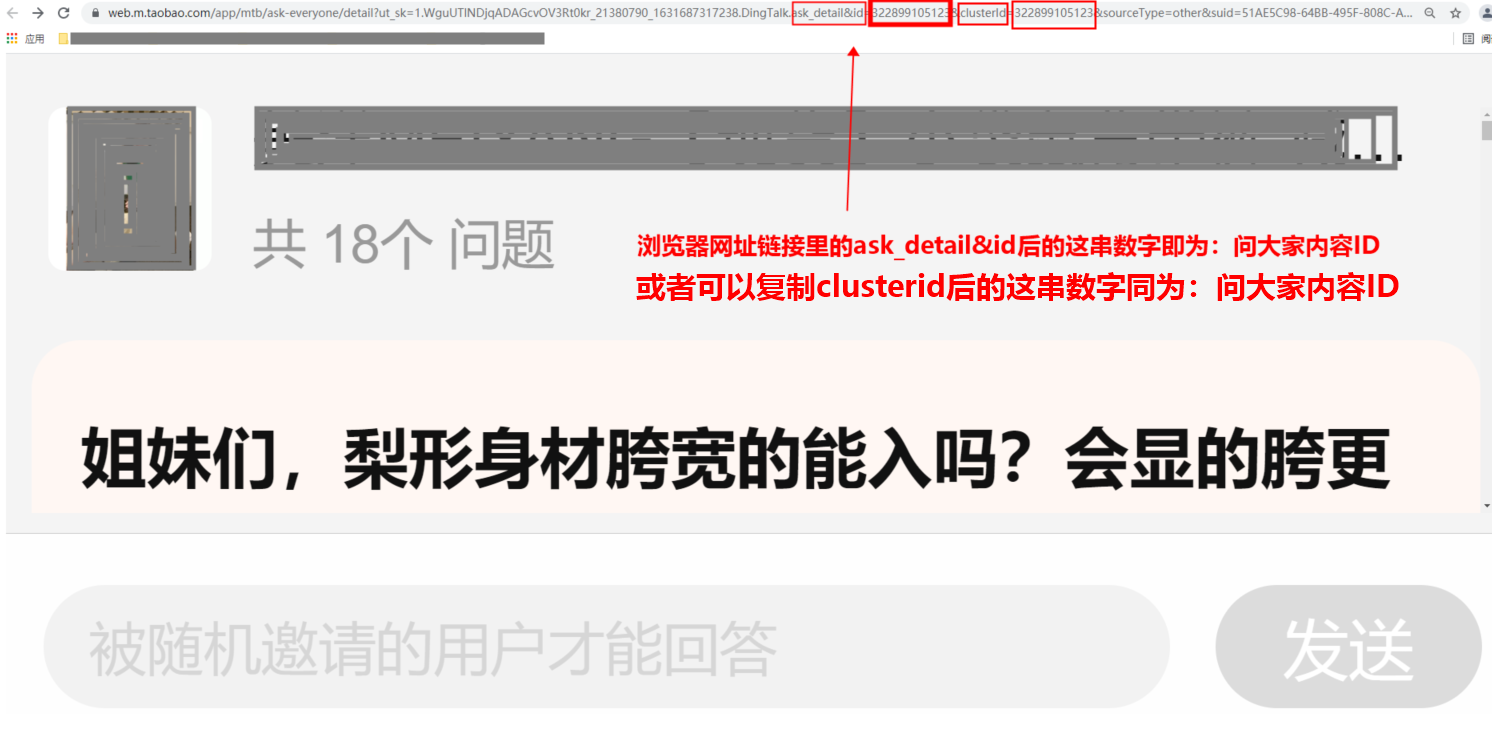 第四步:复制到浏览器里的网址链接会自动跳转成一长串链接,选择浏览器网址链接里的ask_detail&id或者clusterId后的这串数字即为:问大家内容ID