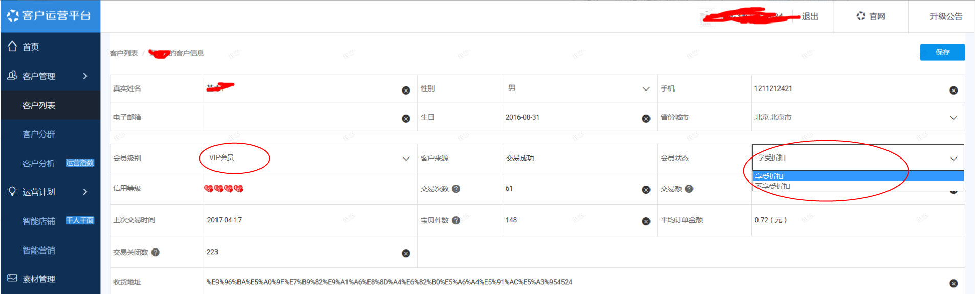 1、买家是否已主动入会成为会员。(可查看客户列表确认买家等级,店铺客户代表未入会)