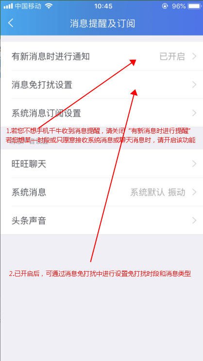 亲,千牛消息免打扰功能是指当登录千牛的账号收到消息时,千牛不直接提醒,并不是不接收对方消息;该功能仅在手机千牛中可设置: