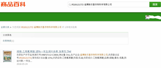 进入【淘宝商品百科】,输入“农药登记证号”+“生产企业”进行搜索(可见下图实例)。