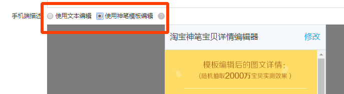 温馨提示:“文本编辑”切换至“神笔模块编辑”后,原有的内容不会切换,需要您重新编辑手机端描述内容。
