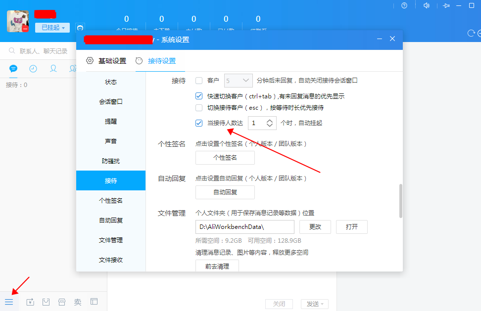 1.系统设置了自动挂起。解决方式:请登录千牛打开任意对话框,点击系统设置——接待设置——接待中不要勾选“当接待人数达N个时自动挂起”